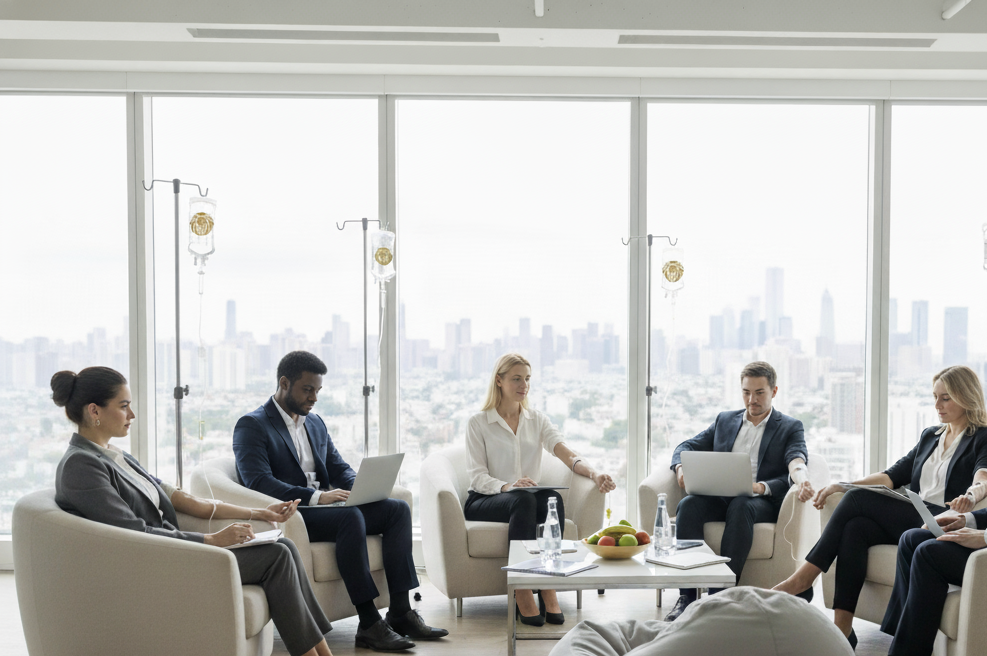 Whether it’s for team-building days, conferences, or regular wellness programs, our in-room IV infusions offer a convenient and effective way to keep your workforce feeling their best. Invest in your team’s health and performance with La V Health Fusion—where innovation meets care.